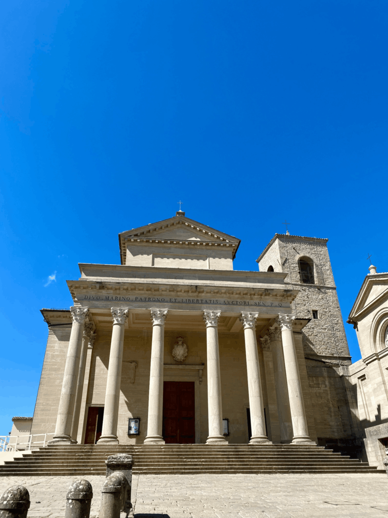 A catedral neoclássica (1826–1838) guarda as relíquias de São Marino e simboliza a união entre fé e identidade nacional. É um dos templos mais importantes da república.
