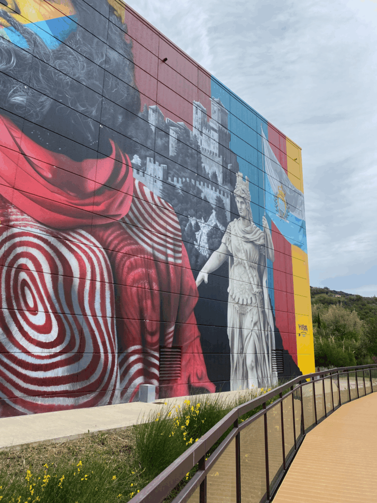 Nas proximidades do cenário medieval, surge um mural vibrante do artista brasileiro Eduardo Kobra, criando um contraste fascinante entre a tradição e a modernidade. Uma explosão de cor que dialoga com o mundo e celebra a diversidade cultural.