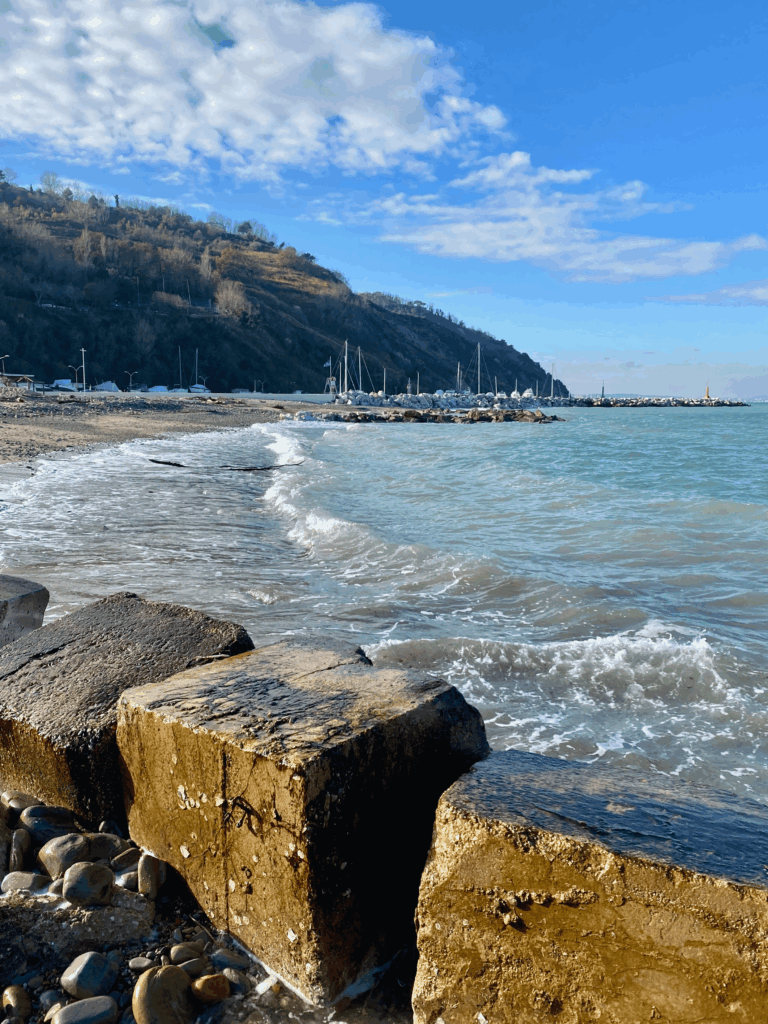Essa posição estratégica cria uma paisagem única. De um lado, o visitante observa o azul intenso do Adriático. Do outro, colinas verdes revelam o interior de Marche.