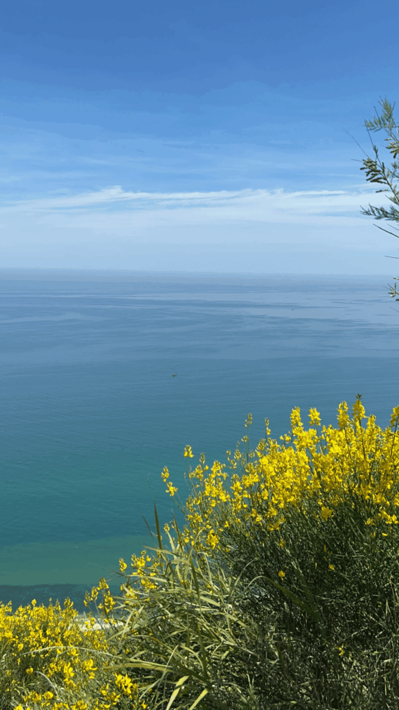 Esse caminho leva até um mirante natural que oferece uma das vistas mais impressionantes da costa. Do alto, você observa o mar Adriático, as falésias e a paisagem verde do parque. Essa trilha é bem tranquila e durante a primavera temos as em flor de vassoura, com seu odor adocicado e criando grandes arbustos amarelos.